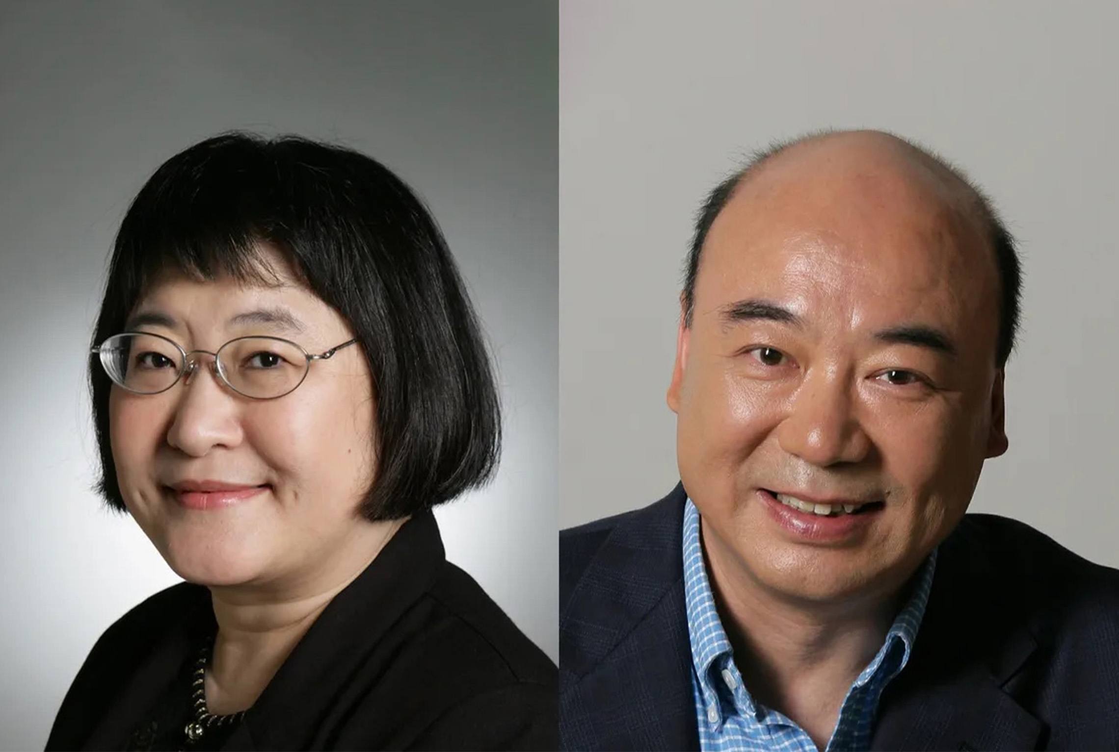 Portraits of Chen Yi and Zhou Long for the After the Revolution: The Life and Music of Chen Yi and Zhou Long show at the Reser